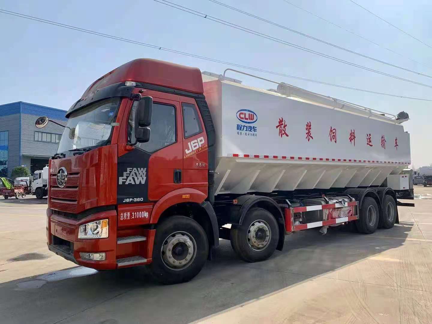 散裝飼料車(英文:bulk feed truck)是用于運輸散裝飼料的專用車,主要用于飼料廠將生產(chǎn)出來的飼料運輸?shù)金B(yǎng)雞場、養(yǎng)豬場等;散裝飼料車同時也可用來運輸某些無腐蝕性粉粒狀原料,如制藥廠粉料和糧庫周轉。散裝飼料車的飼料罐架設在卡車的底盤上,罐體根據(jù)飼料種類不同可以結合用戶需求進行分倉,罐頂開有進料口,頂部設有一根螺旋輸送卸料管(俗稱卸料絞龍,絞龍根據(jù)其動力不同可以分為電動絞龍或者液壓絞龍)則可自由旋轉和抬升。程力散裝飼料運輸車打造行業(yè)精品,以優(yōu)良的性能和經(jīng)久耐用贏得市場,成為國內(nèi)多家知名畜牧公司首選品牌。程力飼料車熱銷車型:東風多利卡飼料車、東風天錦小三軸飼料車、柳汽乘龍飼料車、東風天龍飼料車、半掛飼料車等等。